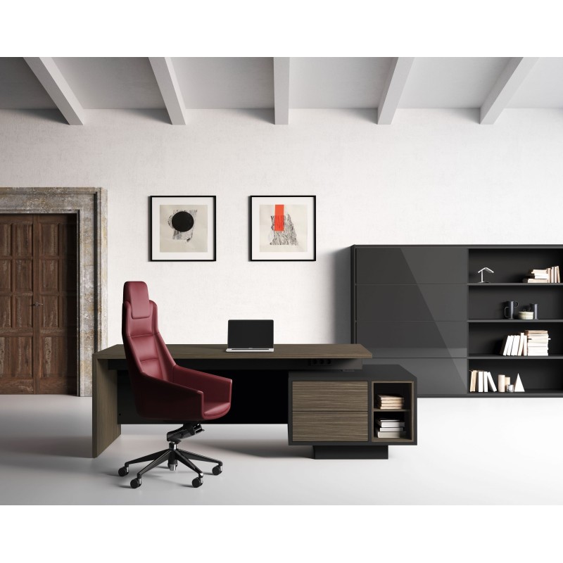 Scrivania rettangolare con cassettiera e vano mensola